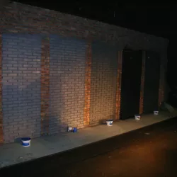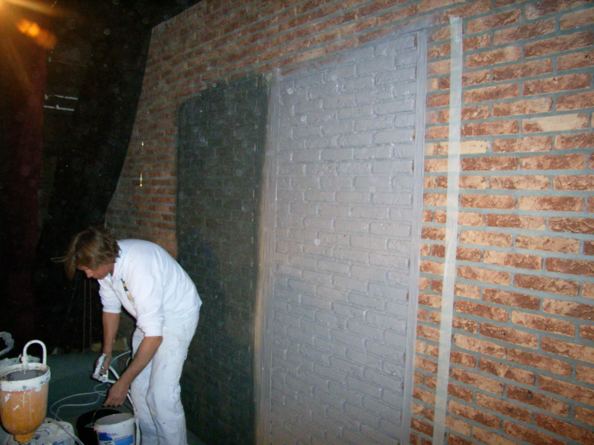 In de Ballroom hebben wij alle wanden gespoten in antracietkleur met afneembare zijdeglansverf. Het houtwerk en de metalen hekken zijn afgewerkt met hoogglanswit, wat zorgt voor een strakke en moderne uitstraling.