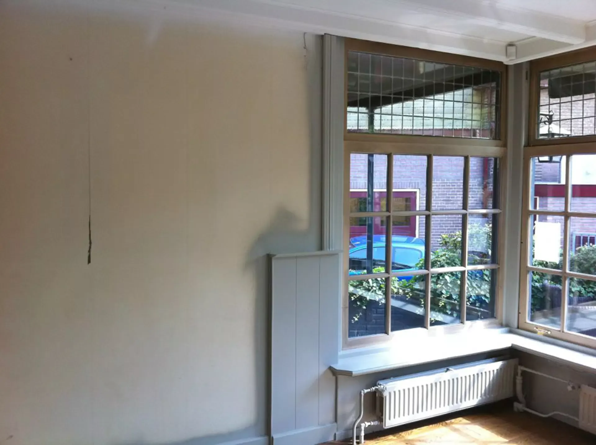 Eerst hebben we alle plafonds en wanden gereinigd om de nicotine-aanslag, afkomstig uit een tijd waarin dit nog mogelijk was, te verwijderen. Vervolgens hebben we de wanden, plafonds en het houtwerk behandeld met een isolerende primer. Het houtwerk is daarna gespoten met zijdeglansverf, de plafonds met matte muurverf, en de wanden zijn opnieuw gestuukt en voorzien van fris nieuw behang.